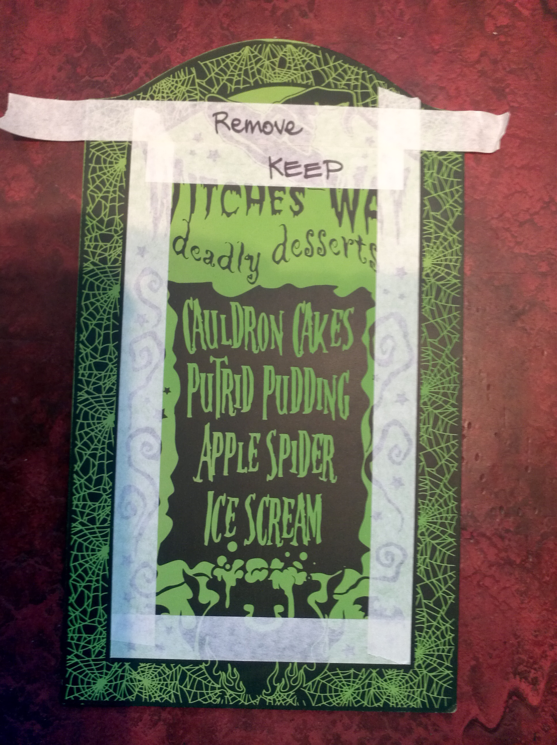 First of all, this plaque has great guide lines, making the taping off process really simple. Use those lines and tape as shown below. Since I didn’t want an arch on my chalkboard, I used the top edge as a reference point for leaving a frame border. Note the tape that says “Remove” that I put along the top. Just under that I added another piece of tape, the one that says, “Keep”. Once that one is in place, remove the top piece of tape, as shown.