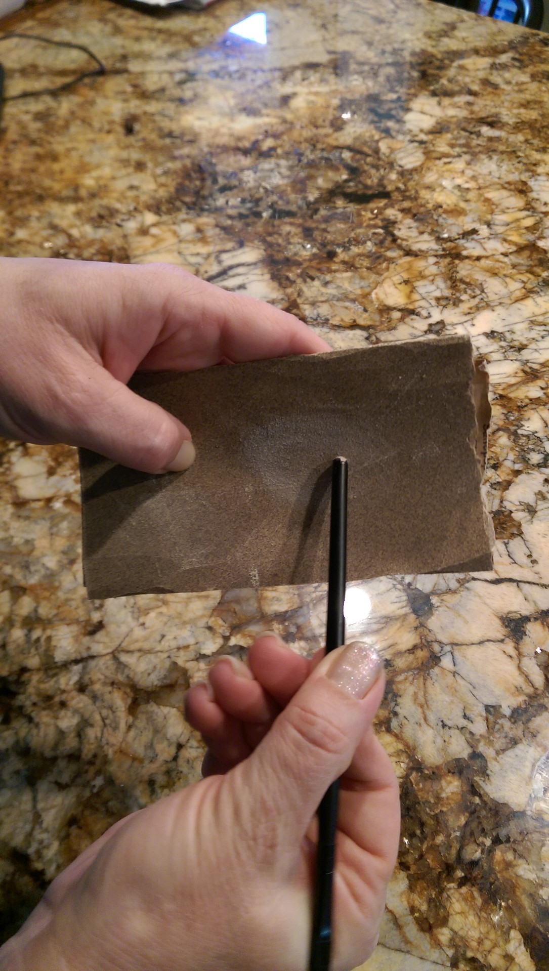 Tacky?  Maybe. Who knows, maybe I will spray paint the tin and add a decorative paper label some day.  Not today.  Once they were placed in the narrow space left over after the drawer organizer was in place, I didn’t even notice the labels.  Another thing, once I put the brushes in the drawer, there were a couple that were a bit too tall to stand upright.  No problem.  I just used wire cutters to trim a little off of the handle and then sanded them into a rounded end, which I then repainted using dark fingernail polish.  Easy fix.