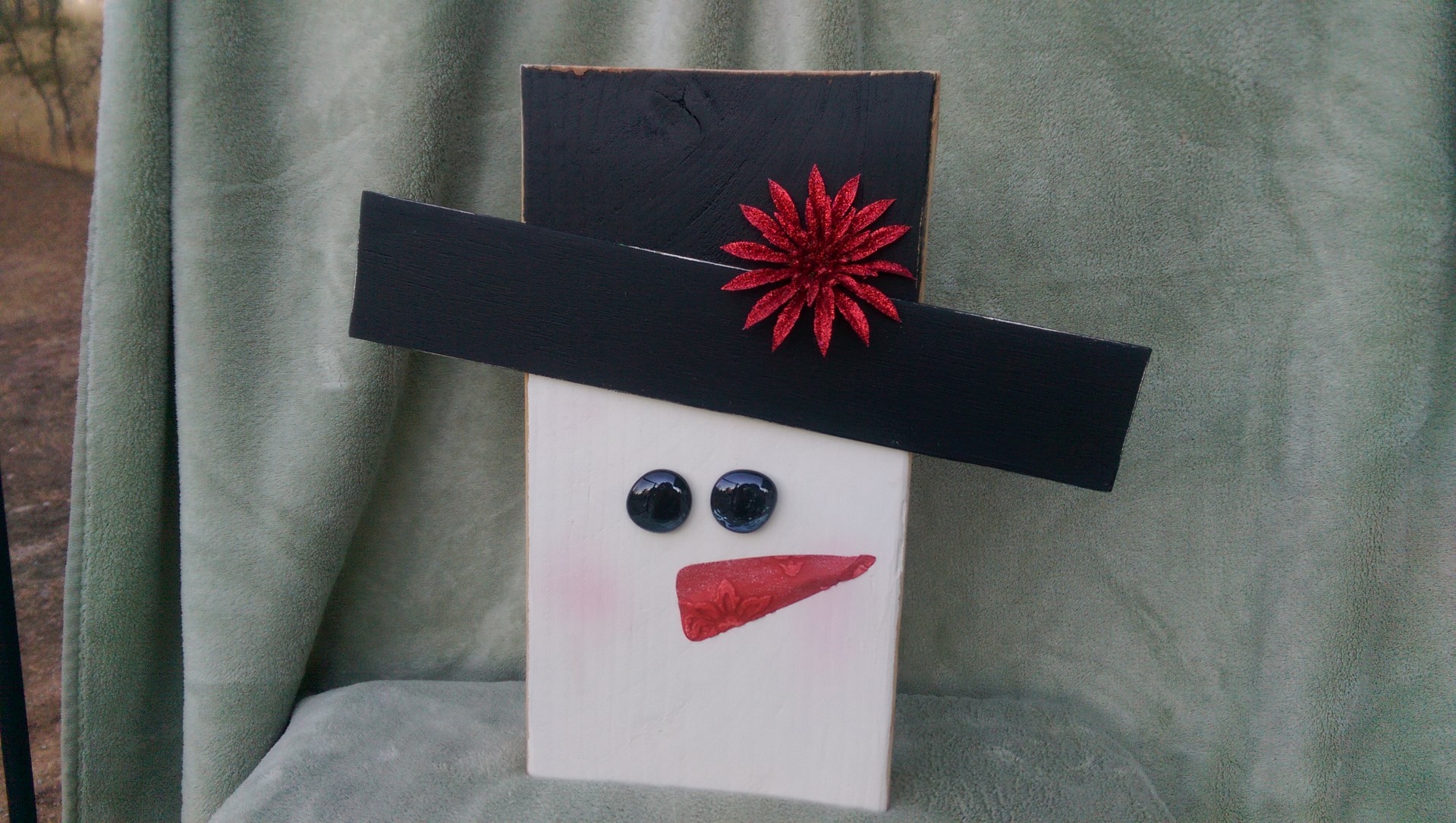 This Snowman/Scarecrow craft was requested by someone who had seen a similar craft online using planks.   As you can see, this craft is reversible, making it possible to have it out from October through January.  Love that!  I will do a tutorial on this soon.  Promise!  ***UPDATE: Here is the tutorial***